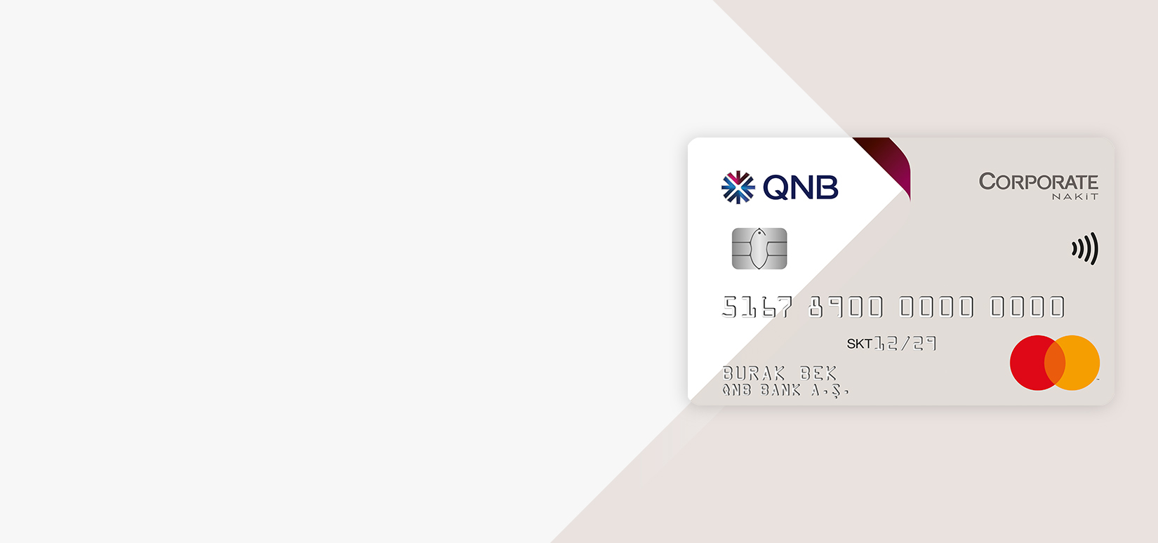 QNB Corporate Nakit is the bankcard of QNB . The purchase and cash advance limits of the cards given to your staff are set according to your preferences and can be modified at your request. You will receive monthly account statements to help you keep track of the details of all the transactions made using QNB Corporate Nakit.
